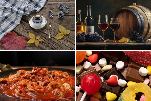 ¼ö¸éÀÇ ÁúÀ» ¶³¾îÆ®¸± ¼ö ÀÖ´Â À½½Äµé. Ä¿ÇÇ(ÀÁÙ ¿ÞÂʺÎÅÍ ½Ã°è ¹æÇâÀ¸·Î) ¾ËÄÚ¿Ã À½·á, ´Ü¼ø´çÀÌ ¸¹Àº ´Ü À½½Ä, ¸Ê°í ÀÚ±ØÀûÀÎ À½½Ä. |