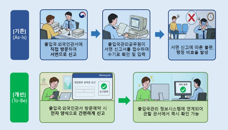 À̹ø °³¼±À» ÅëÇØ, ¿Ü±¹ÀÎÀº º¸´Ù °£ÆíÇÏ°Ô Ãë¾÷Á¤º¸¸¦ ½Å°íÇÒ ¼ö ÀÖ°Ô µÇ¾î ¼·ù ÀÛ¼º µîÀ¸·Î ÀÎÇÑ ºÒÆíÀÌ ÁÙ¾îµé °ÍÀ¸·Î ±â´ëµË´Ï´Ù.